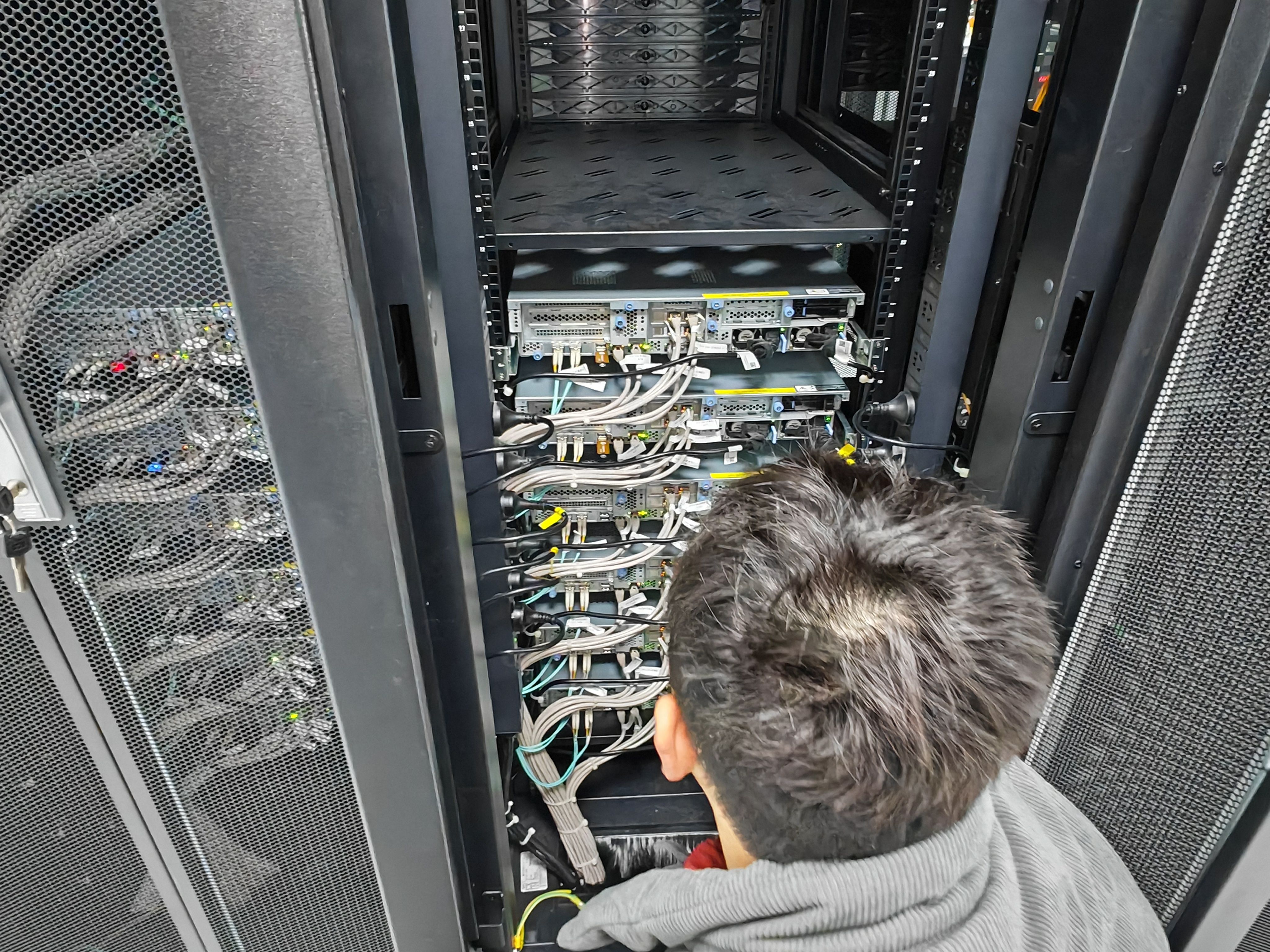 巡检的老师们认真检查机房内各线路的连接状况、空调的运行状态,详细查看电源排插接头有无问题、线缆是否破损、配电间电源线路是否正常、空气开关是否完好、UPS 等供电设备的情况,以及室内有无渗水漏水、是否因设备负载过重导致发热、消防安全是否存在隐患等异常状况。